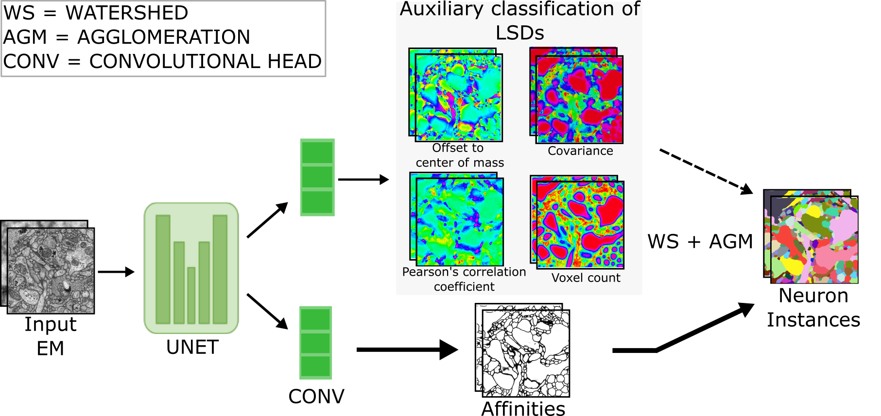 LSDs architecture at a glance (multi-task U-Net)
